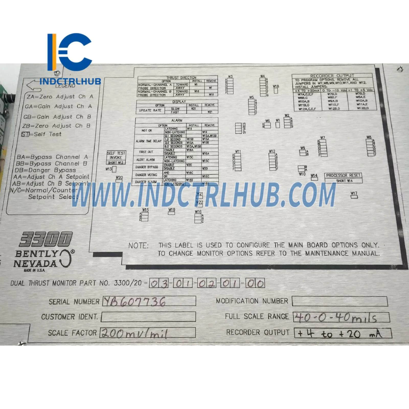 - Типът модел "PLC модул/шкаф" се тълкува като модул за мониторинг в система с шкаф 3300, а не като самостоятелен PLC или шкаф, съгласно функционалността на Bently Nevada__ 3300/20 Dual Thrust Position Monitor.