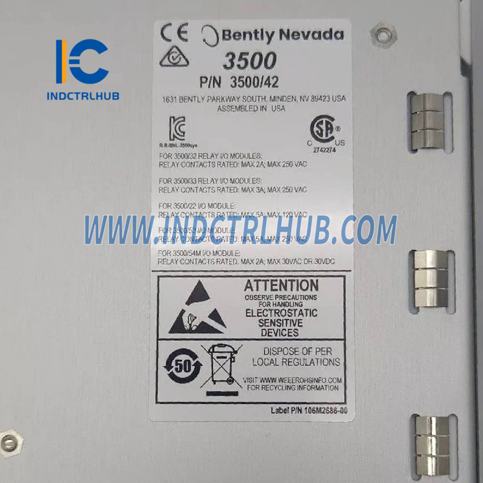 | שם המוצר | מוניטור מהירות דופק רסיפרוקלי 3500/70M, מודול קלט/פלט Prox/Velom עם סיומות פנימיות |