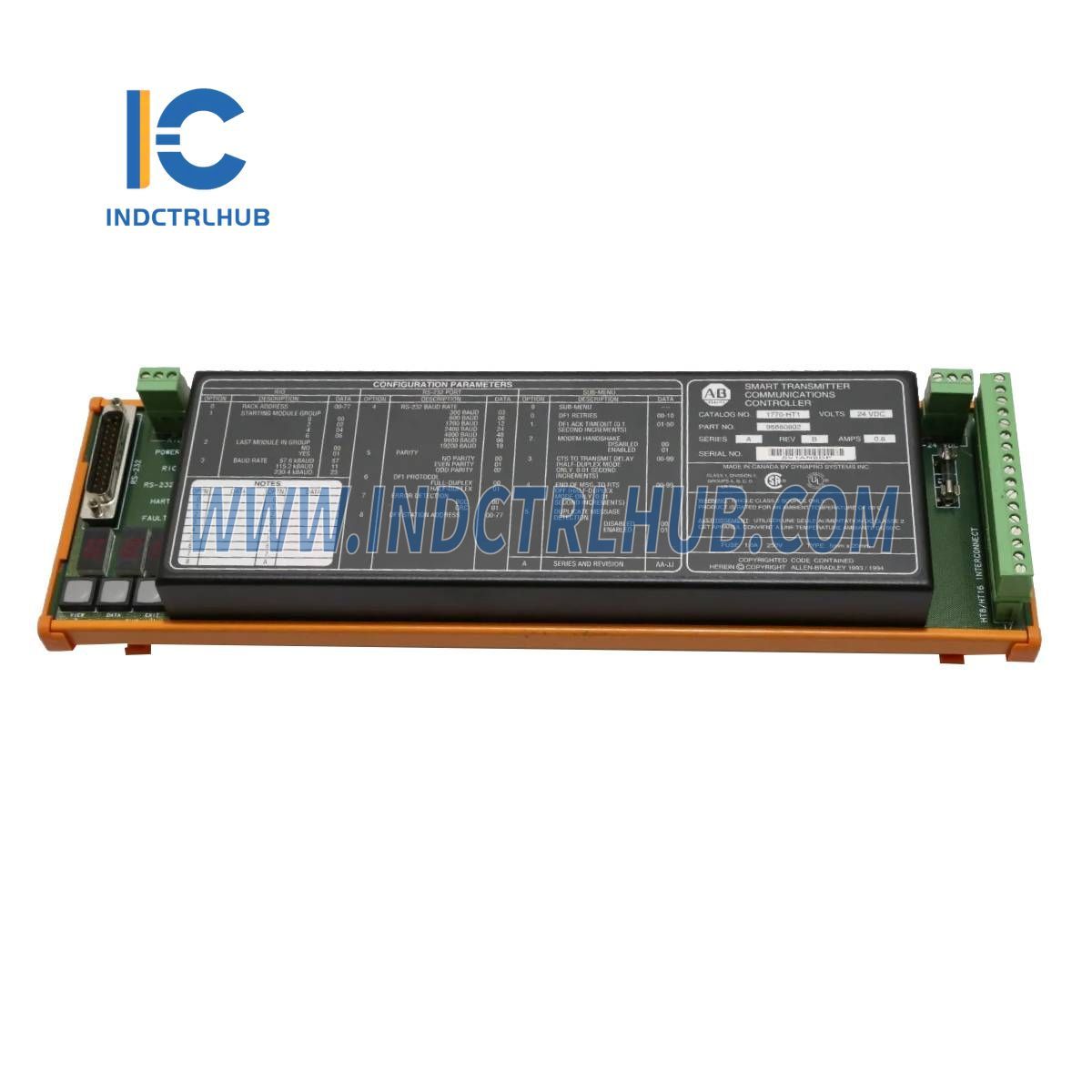 The Allen-Bradley 1770-HT1 ir komunikāciju kontrolieris, kas paredzēts savienošanai ar RS-232 un Remote I/O (RIO) tīkliem. Tas atbalsta vairākus bauda ātrumus un izmanto Allen-Bradley DF1 un RIO protokolus, padarot to ideālu rūpnieciskās automatizācijas un vadības sistēmām.