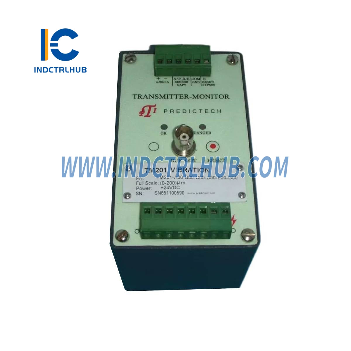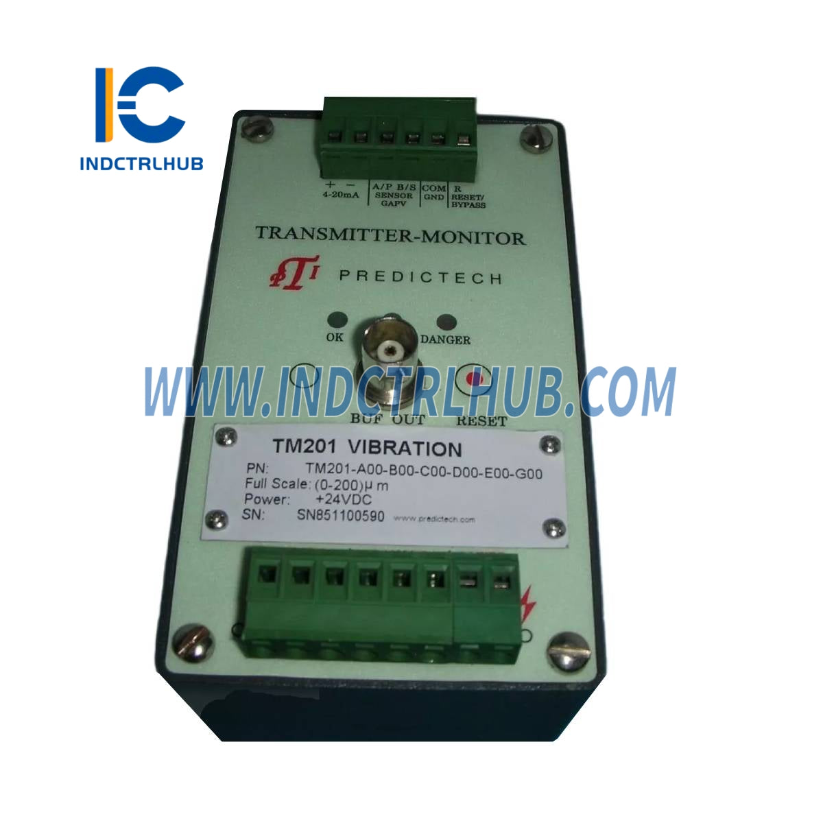 PREDICTECH TM201-A00-B00-C00-D00-E00-G00 je vysielač na ochranu a monitorovanie vibrácií navrhnutý na kontinuálne sledovanie vibrácií rotačných strojov, ako sú turbíny, čerpadlá a motory. Vyrobený spoločnosťou PredicTech (tiež pod značkou ProvibTech), špecialistom na technológiu monitorovania stavu, toto zariadenie meria parametre vibrácií – typicky posun, rýchlosť alebo zrýchlenie – a vysiela štandardný elektrický signál pre integráciu do monitorovacích systémov. Bežne sa používa v priemyselných odvetviach ako výroba elektrickej energie, ropný a plynárenský priemysel a výroba na detekciu anomálií, podporu prediktívnej údržby a zlepšenie spoľahlivosti zariadení. Ako súčasť série TM200 ponúka TM201 robustný výkon a kompatibilitu s rôznymi snímačmi vibrácií, čím zabezpečuje efektívne monitorovanie stavu strojov v náročných prostrediach.