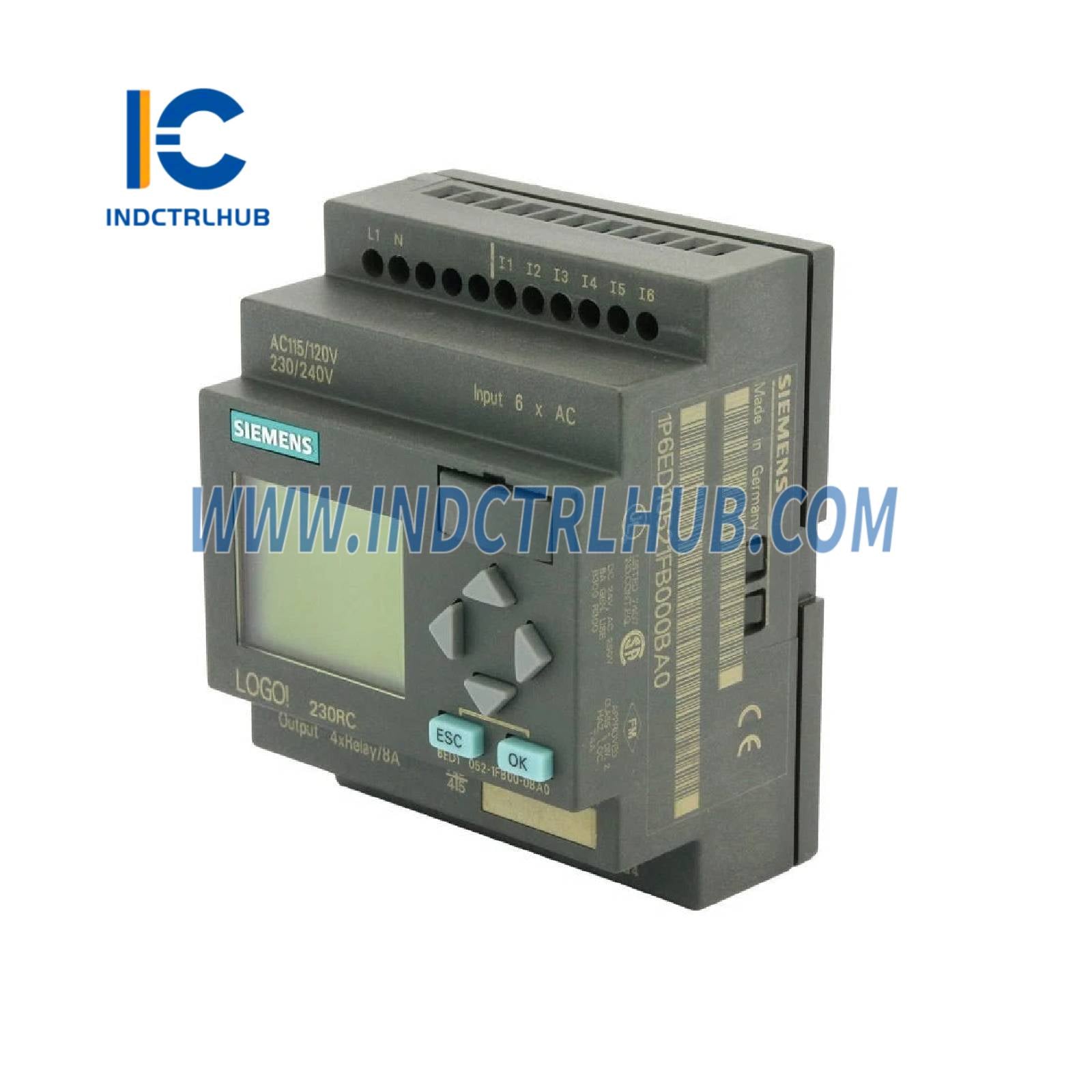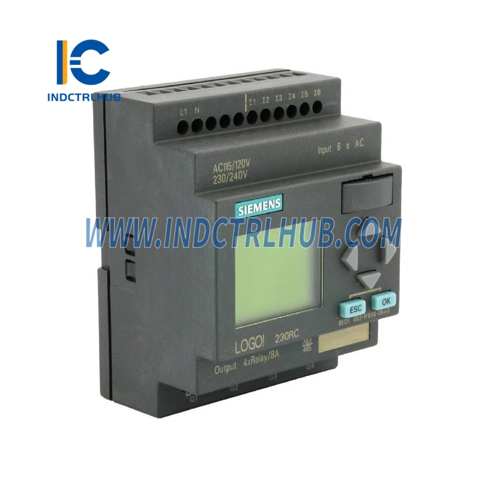 • Product Description: LOGO! 230RC, Logic Module, Display PU/I/O: 230V/230V/Relay + Clock, DIN Rail Mounting